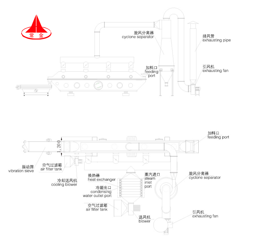 | type | area of fluid-bed (m²) | tempreture of inlet air | tempreture of outet air(°C) | evaporate moisture(kg/h) | vibration motor(kw) |