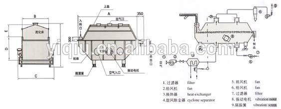 | Model | Fluidized bed area m2 | Temperature of air in °C | Temperature of air out °C | Capacity of vaporize moisture Kg/h | Vibration motor | |