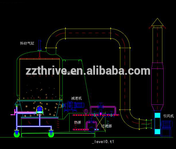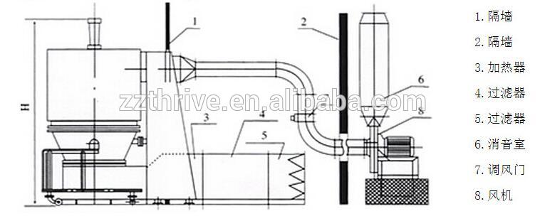 After the air is heated and purified, it is introduced from the lower part into the hole plate through the hopper. In the studio, the formation of fluidized by the stirring and negative pressure, After the rapid evaporation of water,it takes the exhaust away, the material was dried quickly .