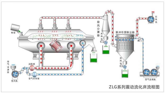 ZLG Series rectilinear vibrating fluid bed dryer is used for chemical, pharmaceutical, foodstuff, grain, mine industries etc, such as citric acid, Monosodium glutamate, borax, ammonium sulphate, com-pound fertilizer, piece of radish, bean, less, seed, mine reside, sugar and so on.