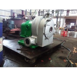 The motor drives the basket as well as the feeding spiral in the same vertical line at different high speed. The materials to be separated go continuously into the feeding pipe and distribute on the wall of the bowl, under the action of the centrifugal force, the liquid goes through the bowl, while the solid staying the bowl form the filter residue . and it goes continuously through the basket and move out of the machine under the combined action of the conic surface component force of the centrifugal force and the spiral feeding pipe.