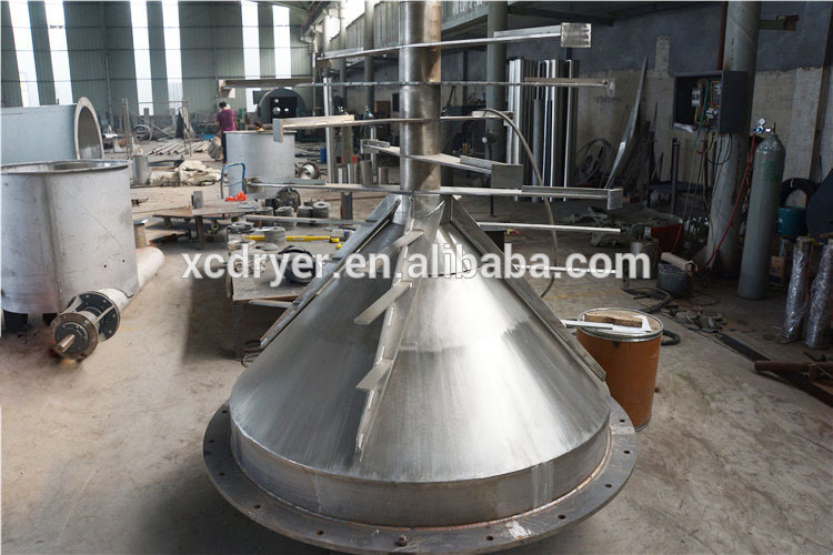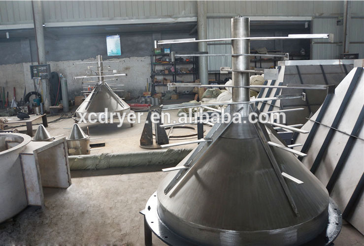 Hot air enters into the spin flash dryer tower tangentially from the air inlet at the dryer bottom and then forms into spiral flow with high speed rotation.