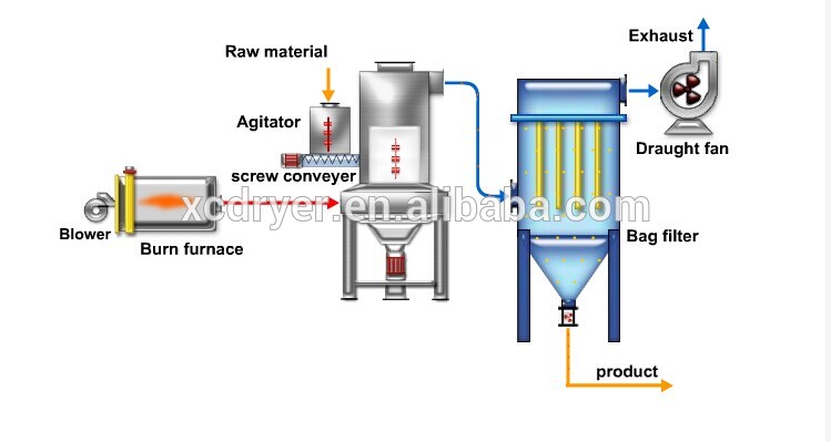 It is a vertical dryer with spin crushing equipment,capable to realize the drying,crushing,classifying