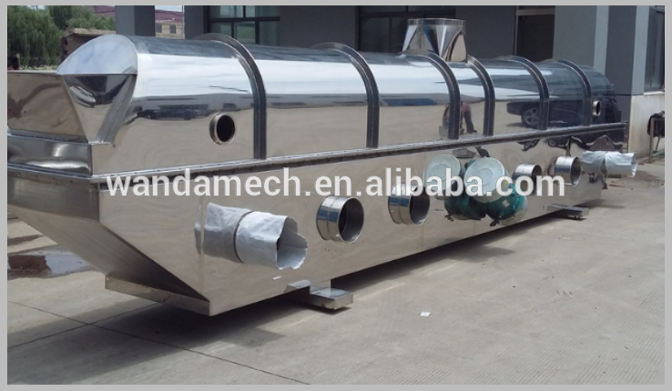 Raw material is fed into the fliud bed dryer from the inlet and moves forward continuously along with the level of fluidized-bed under the action of vibration.The hot air passes through fluidized-bed and carries out heat exchange with damp raw material.Then the damp qir is exhausted out through cyclone separator and duster the dry raw material is discharged through discharge outlet.
