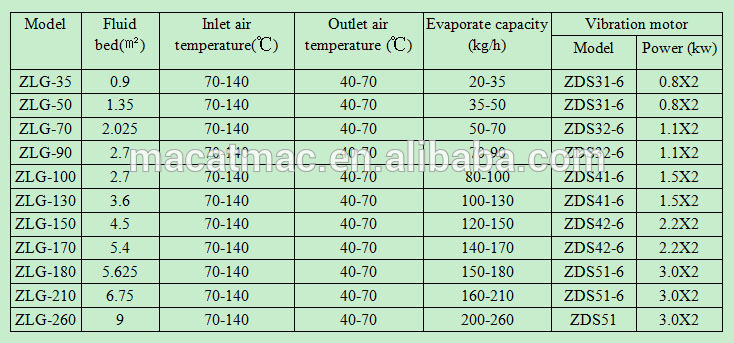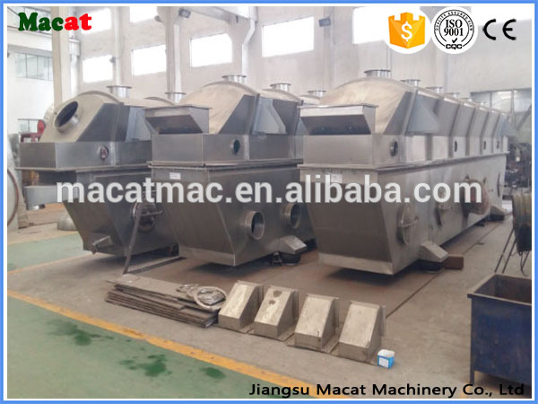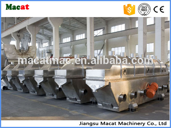Vibrating fluid bed dryer is widely used in light industry, chemical industry, foodstuff, agricultural products, powder, granule, and small block material in pharmaceutical industry. Material examples are as following: refined salt, aginomoto, citric acid, oxalate, potassium permanganate, sesame, pentaerythritol, HPAM, feed, hypha protein, sodium sulfate, plastic archon, catalyst, stripping and slicing potato, baking soda, detergent, quartz sand, soybean billet, ban pulp, metal powder, boric acid, sodium borate, activated clay, compound fertilizer, eat.