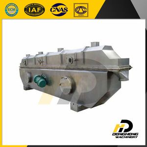Fluid bed dryer is widely used for drying, cooling and damp decreasing (or carry out at the same time) for powder or granule materials. Material is fed into the machine from feeding inlet, and moves forward continuously along with the level of fluid bed under the action of vibration force. Hot air passes through fluid bed and carried out heat exchanging with damp material. Then the damp air is exhausted out by exhaust fan, some fine powder is collected by cyclone separator and dust remover, and dried product is discharged from discharging outlet.