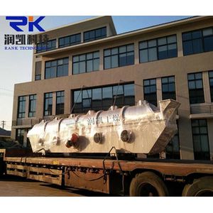Raw material is fed into the dryer from the feeding end and moves forward continuously along under the function of vibration. The hot air penetrate fluid bed plate and dry damp raw material. Then the damp air is exhausted out through cyclone separator and dried raw material is discharged through discharge end.