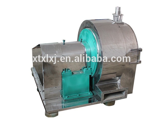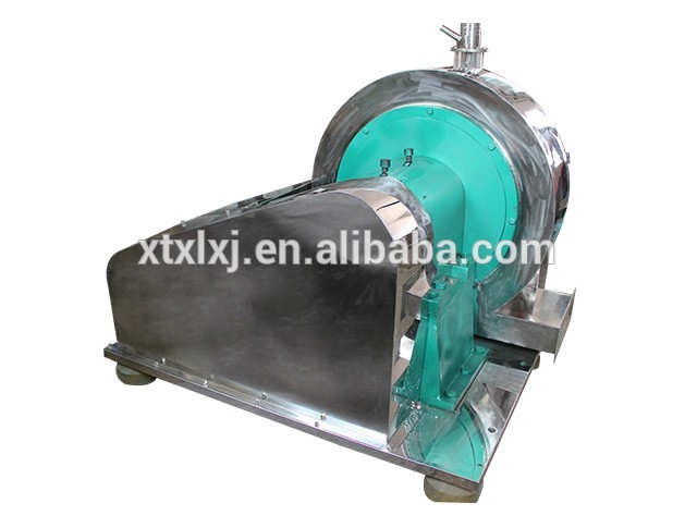 The motor drives the basket as well as the feeding spiral in the same vertical line at different high speed. The materials to be separated go continuously into the feeding pipe and distribute on the wall of the bowl, under the action of the centrifugal force, the liquid goes through the bowl, while the solid staying the bowl form the filter residue . and it goes continuously through the basket and move out of the machine under the combined action of the conic surface component force of the centrifugal force and the spiral feeding pipe.