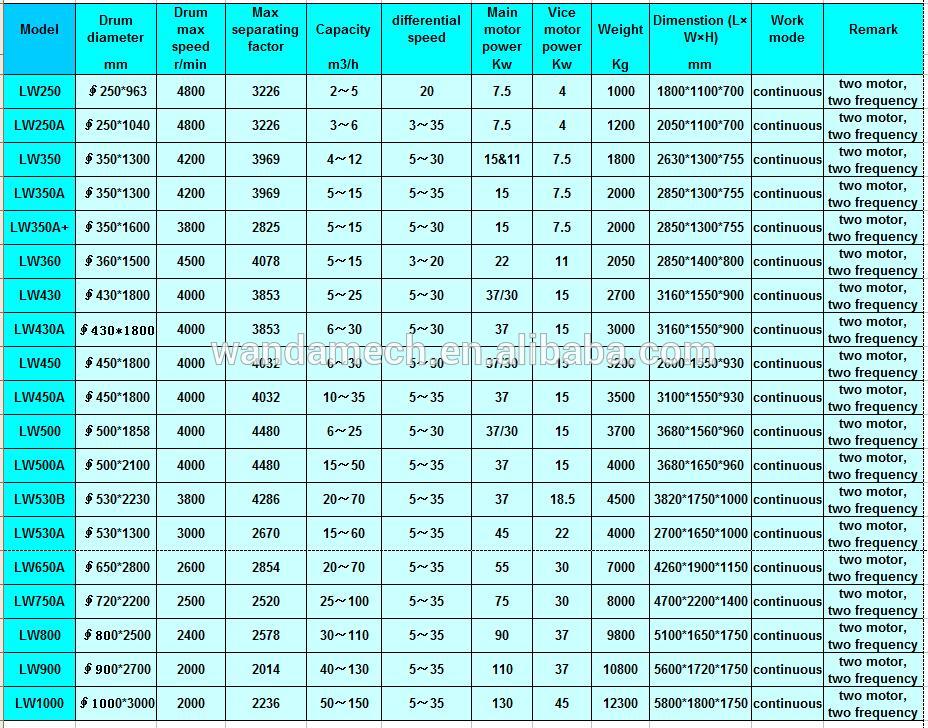 This machine is horizontal spiral discharging settling centrifuge, the main machine has a column-cone bowl, spiral stoker, differential system, bearing seat, base, cover, main motor,vice motor, and electric control chamber. With the high speed rotating of bowl, form strong centrifugal force, making the sludge dehydrate continuously in 24 hours a day.