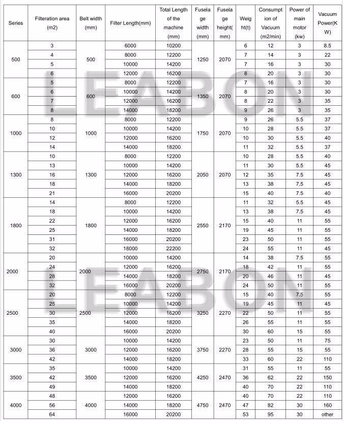 Does your process involve: 1 solid or liquid recovery 2 continuous separation of solid and liquid 3 cake washing for cake purity 4 Liquid filtrate recycling use Are you interested in: 1 minimal operator attention 2 low maintenance and expense 3 long service lifetime of a machine | Horizontal vacuum belt filter press offers: 1 Continuous operation 2 Large capacity of disposal 3 Ease of operation, minimal attention requirement 4 Simple, durable designs for low maintenance and long service life 5 Application versatility 6 Wide range of sizes |