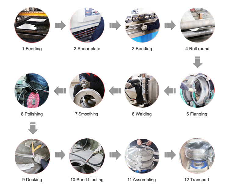 Industrial citric acid stainless steel vibro sifter adopt new type dynamic generator, making three dimension powers more obviously and successfully, making the scale of processed materials enlarged.
