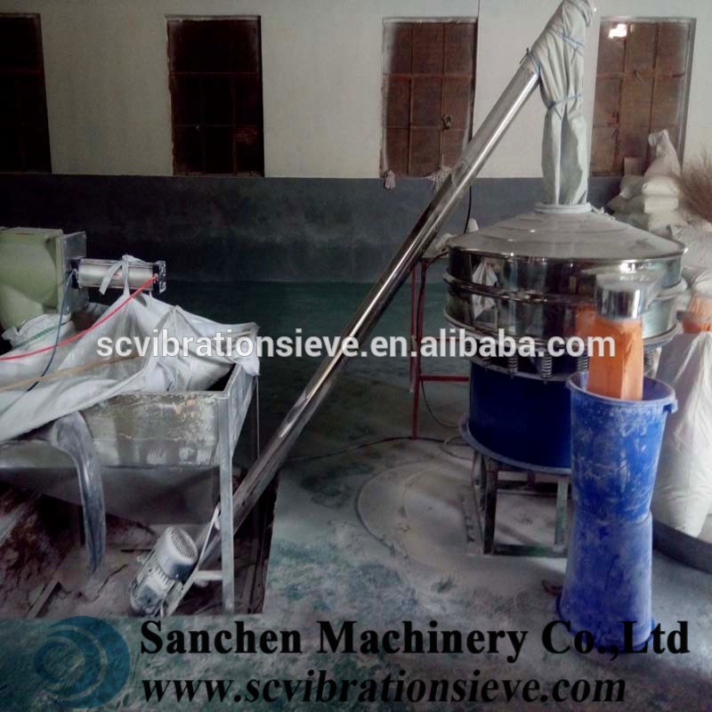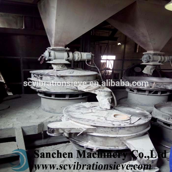 Xinxiang sanchen CE ISO certified circular food additive citric acid vibratory screening machine,High frequency electric oscillating ultrasonic resonant power generated by the oscillator into longitudinal oscillation wave high frequency sine form, these oscillations to resonant ring to ring resonator resonance, and the resonance loop will even vibration transmission to the screen surface. The screen of the material in the low frequency vibration three yuan at the same time, ultrasonic vibration superposition, which can prevent clogging, and improve the yield and quality.