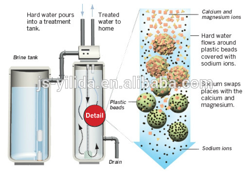 Mainly used in industry and civil water softening preparation, such as Boiler feed water make-up water, air conditioning system make up water, heat exchanger, power plant, chemical, textile, printing and dyeing, bio-pharmaceutical, Electronic system and water pretreatment.