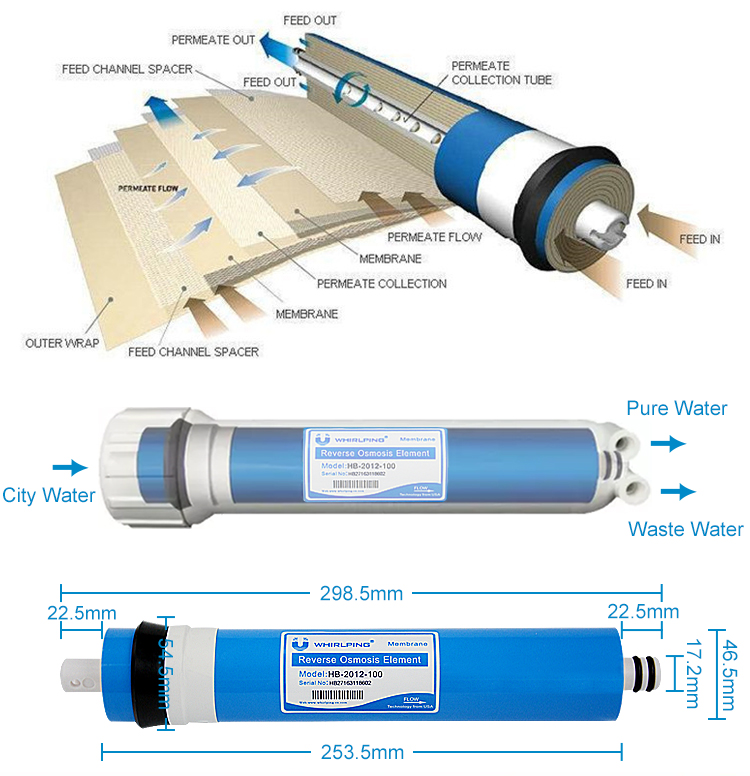 home water purifier 2012 100gpd reverse osmosis membrane replacement cartridge filter