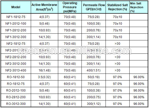 | Min. Salt rejection | 96.00% | |
