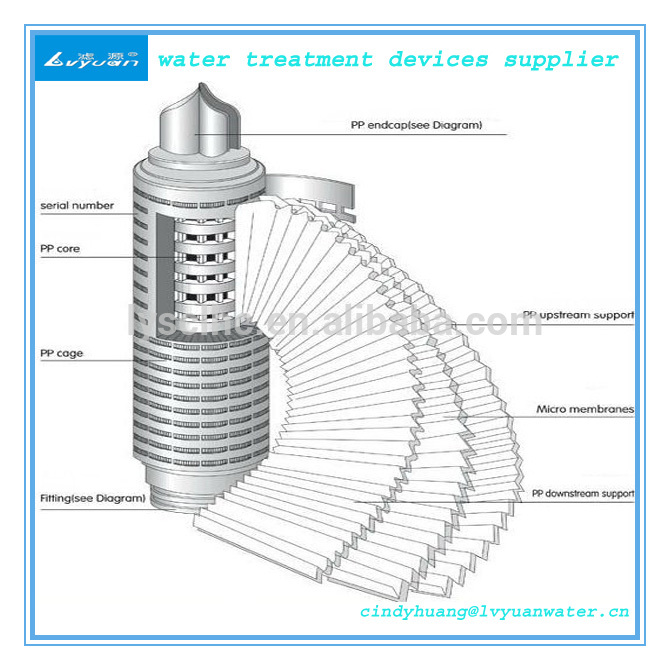 Polypropylene filter is a kind of fixed aperture depth filter cartridge with the filter media of fine polypropylene fiber, the filter media comply with the FDA requirements. Filter micron rate range is from 0.1um to 60um. With the features of low pressure drop, high flow rate and long service life, polypropylene filter is the best choice as the pre filtration. The complete polypropylene structure has stable performance and wide chemical compatibility.