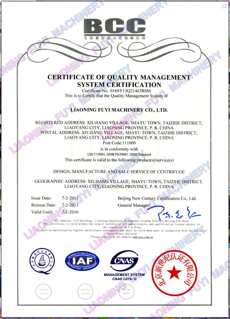 Liaoning Fuyi Machinery Co.,Ltd. is one of the most famous centrifuge manufacturers in China with 30 years mature experience and techniques. "China Tubular Separator National Standard" is drafted by our company. Nowadays our customers are from global market which give good feedback for our products. We promise supply customers the best quality and service in China.