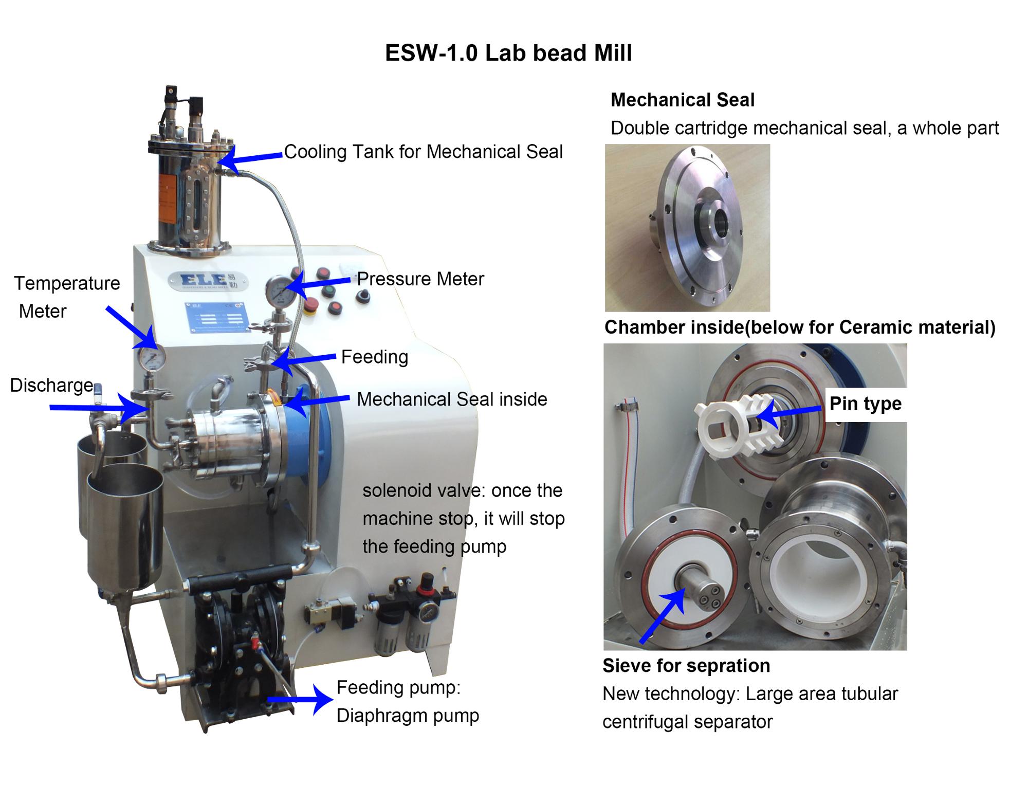 ESW bead mill series are ELE’s patents, they adopt the most advandced L/D ratio, double mechanical seal, scientific cooling systems and advanced material discharge method, etc. ELE is always a leader in grinding and dispersing technology over years, and ELE mills are widely used in dye and pigment, paint and coating, electronics, ink, pesticide SC/EC, Chemical, food and cosmetics industries etc.