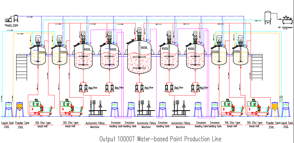 All kinds of ink production line design and manufacturing such as water-based ink,UV ink,screen printing ink,print ink,seiko ink and offset printing ink are within our business range.We also provide whole plant construction services.