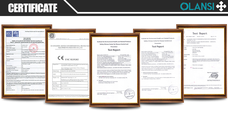 * CE, CB, CCC, CQC, RoHs, ERP approval of air purifier