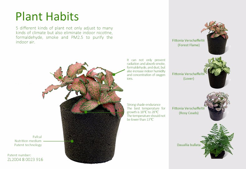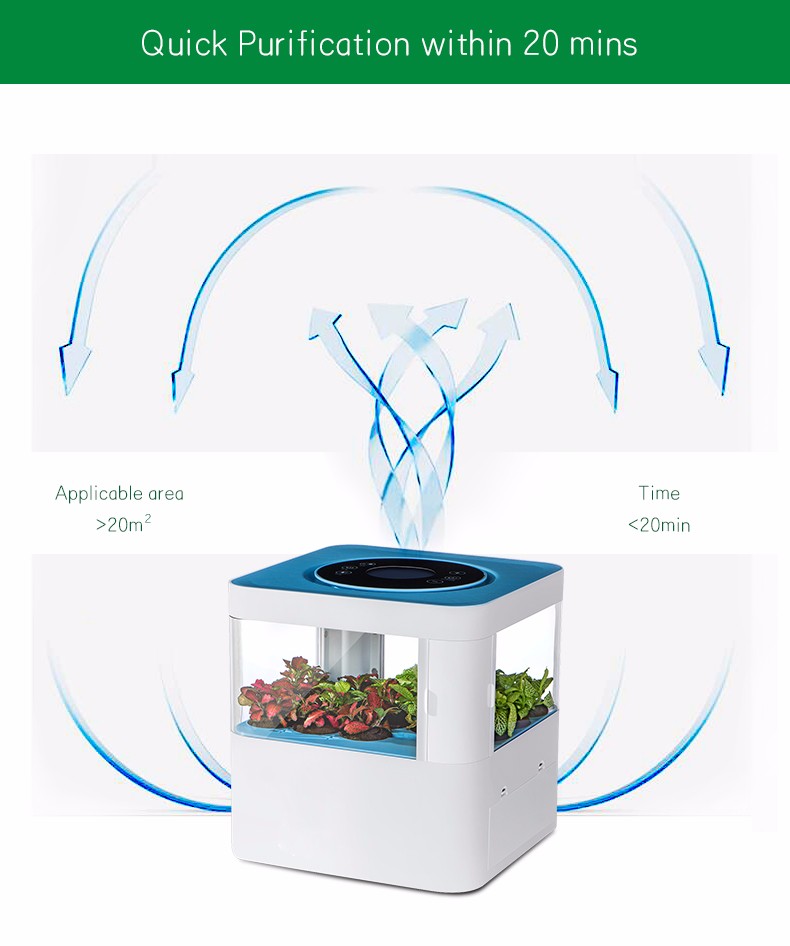 | Working Principal | Plant Purification/HEPA/Activated Carbon/Negative ions and Sterilization Box |