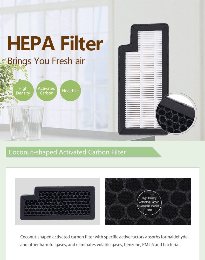 2. A new filter combined a high-density HEPA filter of H13 degree with a coconut-shaped activated carbon filter, which can eliminate PM0.03 particulates and absorb the volatile gases, such as formaldehyde and benzene.