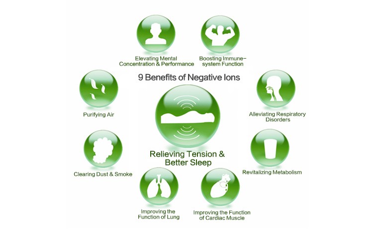 4. Negative ion is an effective way of sterilizing and purifying the air. It also helps to boost the body’s metabolism and immunity. It helps 7 systems of the human body to oppress and remit more than 30 diseases.