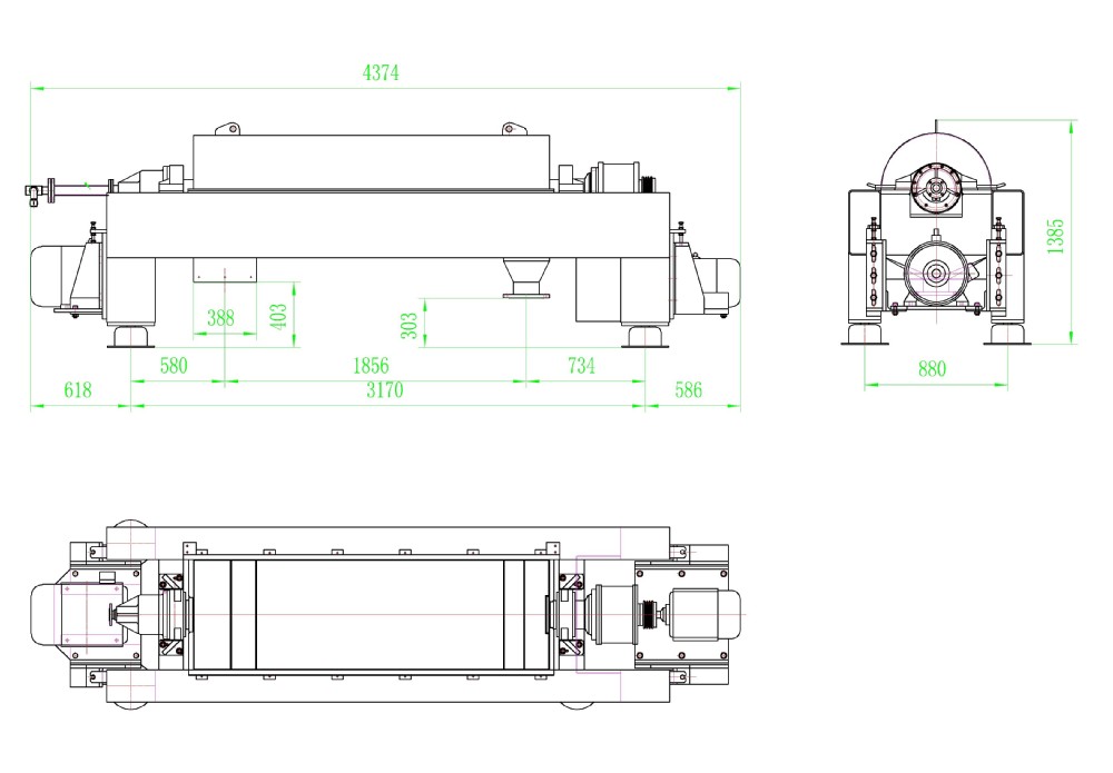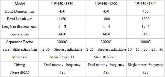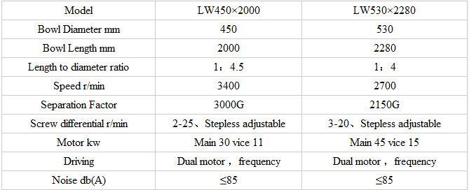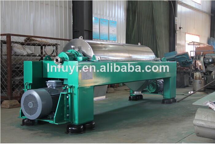 Decanter centrifuge is a horizontal centrifuge with continuous feeding and continuous discharging. The settling speed is determined by particle size,particle shape,difference in density between solids and liquids as well as their viscosity.