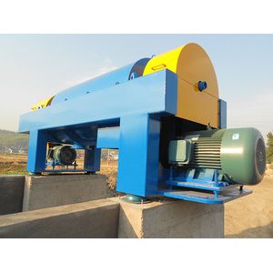 This machine is horizontal spiral discharging settling centrifuge, the main machine has a column-cone bowl, spiral stoker, differential system, bearing seat, base, cover, main motor,vice motor, and electric control chamber. With the high speed rotating of bowl, form strong centrifugal force, making the sludge dehydrate continuously in 24 hours a day.
