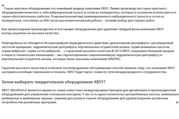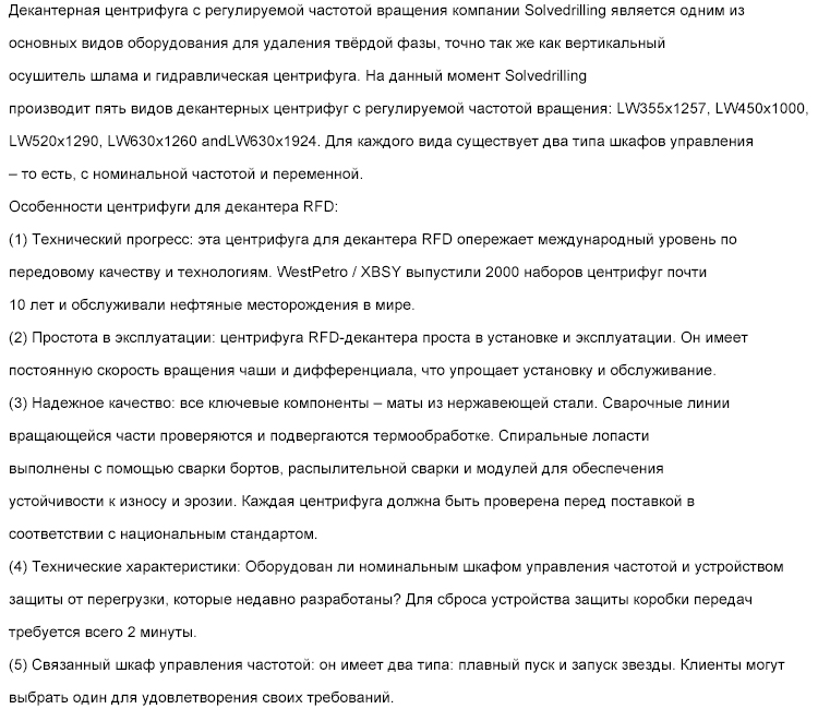 Horizontal spiral discharge sedimentation centrifuge (referred to as decanter centrifuge) is an effective separation equipment which use centrifugal acceleration generated by high-speed rotation into the acceleration of gravity to shorten thousands of times of the settlement time of solid particles than in the gravity field. The solid particles are discharged from the drum through the screw conveyor continuously and without interruption.