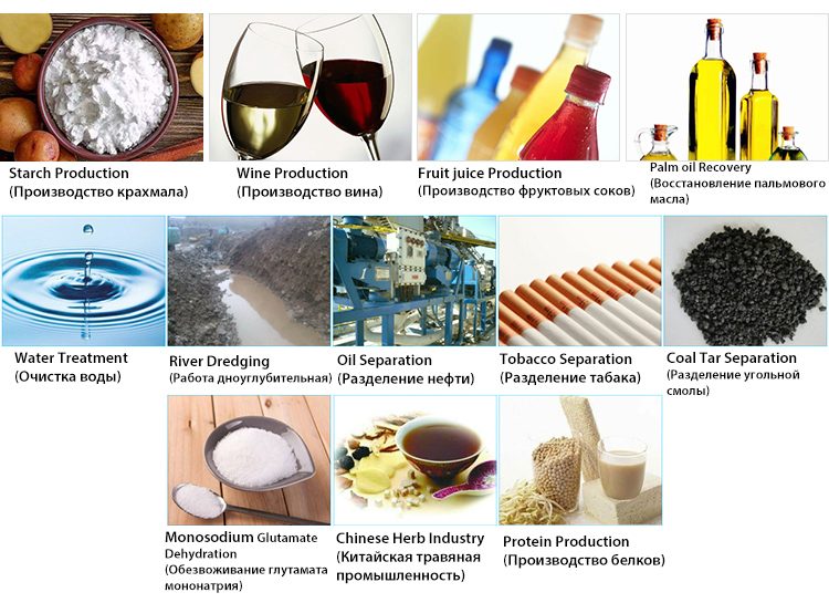 LW series Industry Decanter centrifuge is widely used in wastewater treatment, crude oil recovery, coal tar recovery, palm oil recovery, fruit juice production, protein production, DDGS production, starch production, food waste treatment, etc. with VFD, and PLC Control, can choose 2/3 phase separation.