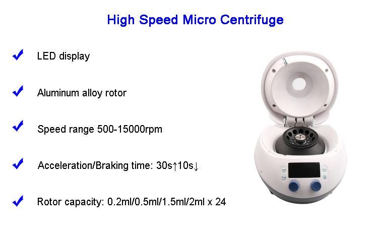 2. Powerful centrifugal force of 15100 x g and Max. speed of 15000rpm