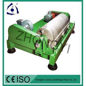 When the motor drives, the materials to be separated fed into the bowl at high speed. Under the action of the strong centrifugal force, the materials form the annular flow and the solid phase stay on the wall of the bowl, and the solid phase becomes solid cakes, as the speed of the bowl is different from that of the spiral, that means relative movement, by the movement the solid cakes go into the drying section and continuously dewater , then move out the machine ( centrifuge), at the same time, the clear liquid phase move out from other exit.
