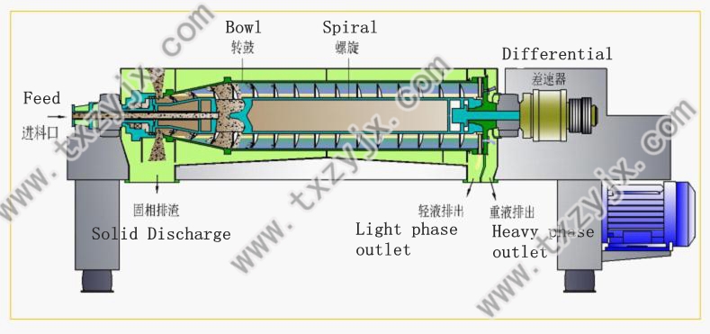 1.Separation Principle of 3 phase Horizontal Decanter Centrifuge