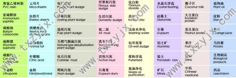 The most common application is separation of solid substances from high concentrated suspensions. Used in this way for the treatment of sewage sludge it enables the dewatering with the production of more or less consistent sediment depending on the nature of the sludge to be treated, and the accelerated thickening of low concentration sludge.