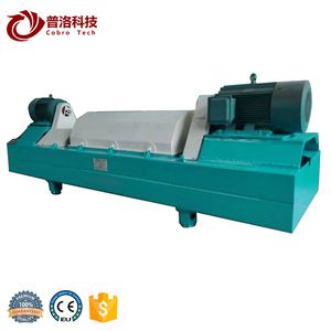 Drum and screw are working with higher speed at a certain differential rotation. Material is transported into spiral tube continuously , accelerated after the rotary drum, in under the action of centrifugal force field, the heavier solid deposit formed in the drum wall sediment layer.The feeding screw continuously pushes the solid phase of the deposit to the drum cone, and then out of the drain.The lighter liquid phase forms the inner liquid ring, which is continuously overflowed by the large end of the drum, and is discharged through the drain outlet.The machine operates at full speed, continuously feeding, separating, washing and discharging.It has the characteristics of compact structure, continuous operation, stable operation, strong adaptability, large production capacity and convenient maintenance.It is suitable for the suspension with solid phase particle size greater than 0.005mm and concentration range of 2-40%.Widely used in chemical industry, light industry, pharmaceutical, food, environmental protection and other industries.