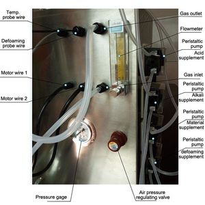 7. Standard interface: PH / DO / temperature probe port / inoculation port / foaming alarm port / acid / supplement, etc.