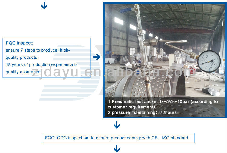 The whole set equipment is made of austenitic stainless steel.The cooling jacket adopts dimple jacket. The jackets are provided at tank body and conical bottom to effectively increase the cooling speed. Heat exchangeing area of jacket of different proportions can be allocated according to customers' technological requirements.