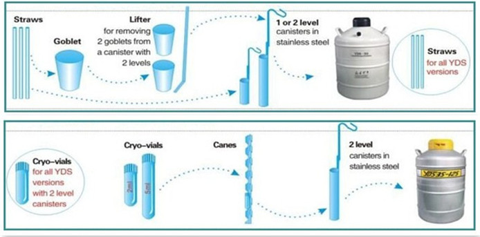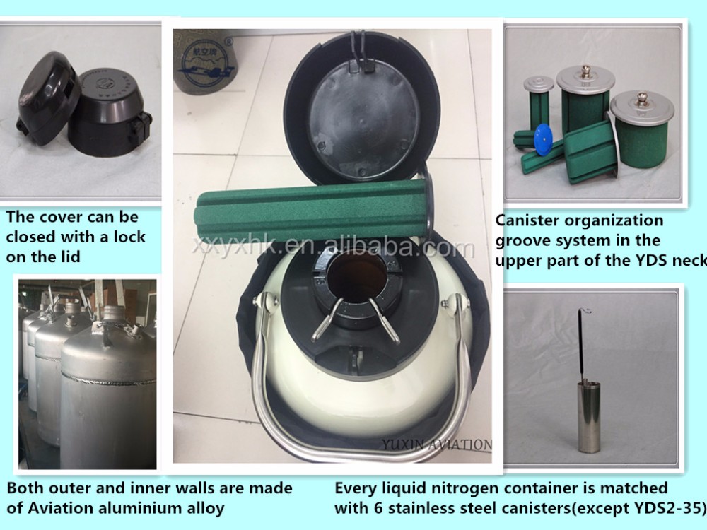 Aviation brand liquid nitrogen biological containers with the characteristics of light weight, easy to carry, good refrigerating performance, are widely used in animal husbandry, medical treatment, scientific research that use liquid nitrogen as refrigerant to storage semen, embryos, strains, vaccines, skin, organs, and other alive material as well as industrial, including cryogenic treatment, cold assembly, instruments, and the original cooling, and hairdressing, cryosauna, etc.