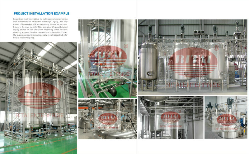 Shanghai Ritai Medicine Equipment Project Co., Ltd. mainly specializes in innovation and development of sanitary stainless steel pressure vessels, atmospheric pressure vessels, fermenters, valves and piping system which are widely used in the following fields, such as pharmacy, biology, chemistry, food and drinks industry.