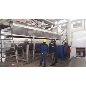 ZDG vibrating fluid bed dryer adopts fully enclosed structure, which can effectively prevents cross pollution between materials and air, resulting in a clean working environment. The materials enter into the drying machine via feed inlet, under the effect of exciting force, the materials along the horizontal direction proceed forward continuous movement. Hot air from top to bottom or from bottom to top conducts heat transfer with the materials through fluidized bed, thus uniformly drying the materials. Hot air passes through the pore plate of fluidized bed to transfer the heat, and then expels from the air outlet and the dried materials are expelled from the discharge opening.