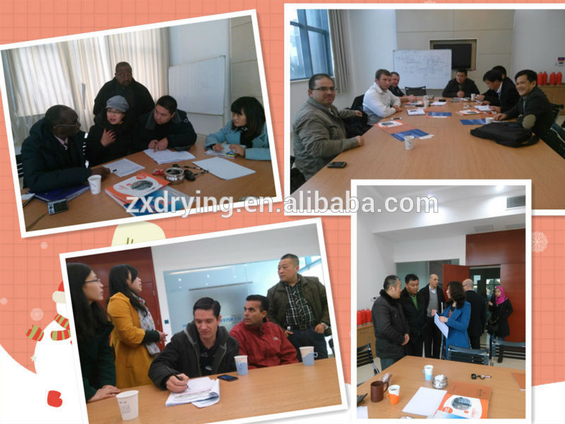 Amount of air, heating temperature, time of material sticking on the belt and velocity of feeding material can be adjusted in order to obtain the best drying effect.