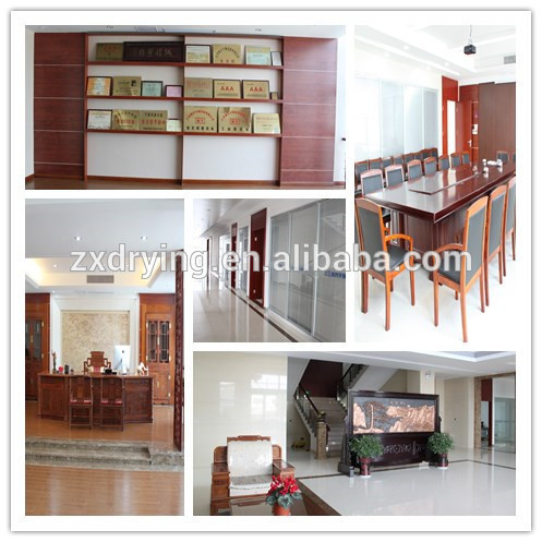 Raw material are spreaded on the conveying belt through suitable auxiliary mechanism such as distributor, vibrating belt, pulverizer of granulator, belt passes the channel which containing one or several heating units; heating unit is equipped with air heater and circle system. Each channel has one or several damp exhaust system. When raw material is transited, hot air passes through or over it, in this way it makes raw material dry uniformly.