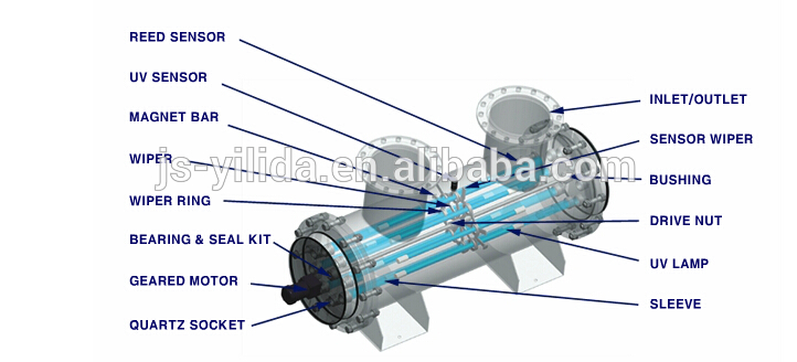 UV Sterilization System 254nm UV Light Water Sterilizer With Electric Automatic Motor Cleaning Device