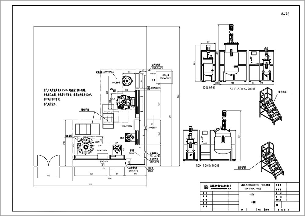 | Temperature control | double walled dished base for temperature control, cooling water temp.+5~65℃,±0.5℃ | |