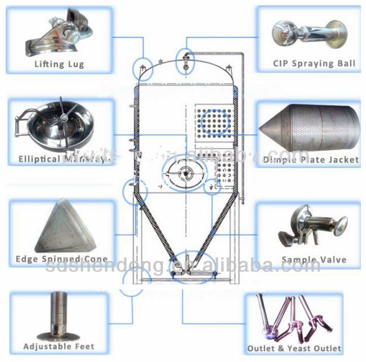 1000l fermentor, industrial fermentor, beer fermentation tank/fermentor