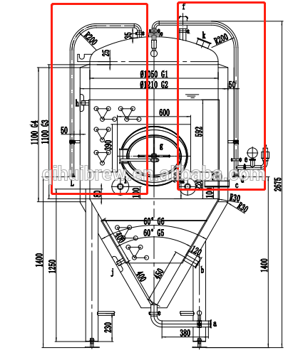 The traditional design of the fermenter’s cylinder and cone is double-jacket, the seal head is single-jacket, based on the original design.