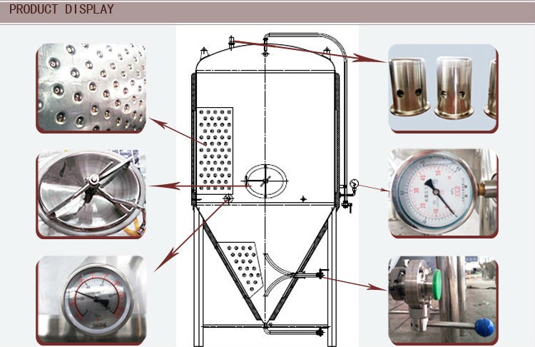 Our range of Jacketed Conical Fermentation Tanks (Beer Fermenters) are available from 1 Barrel to 100 Barrels. The conical fermentation tanks have a dish top with cylindrical body. The 60 Degree conical bottom is ideal for fermenting and improving the quality of beer as well as breeding yeast. All tanks are food grade stainless steel 304 with a 3 mm thickness for 3BBL-70BBL, while larger tanks have a 4 mm thickness. The cooling system is a dimple jacket tested to 6 bar with working pressure of 5 bar and the tanks are insulated with high density polyurethane. All tanks are designed for up to 15 PSI (internal pressure) and tested at 30 PSI. The inside of the tanks are polished to Ra>.22um and the outside is a brushed / Satin finish. Unlike most other tanks, ours come with full Worksafe approval.