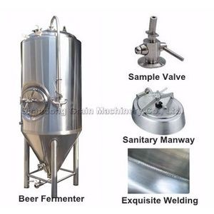 Grain fermenters can be individually temperature controlled through glycol jackets(single wall tank is available) and are mostly equipped with accessories such as pressure relief valve, CIP cleaning jet, sanitary sample valve, manhole,etc. When calculating your fermenting and lagering capacity and configuration, you can choose a tank for your brewing process.