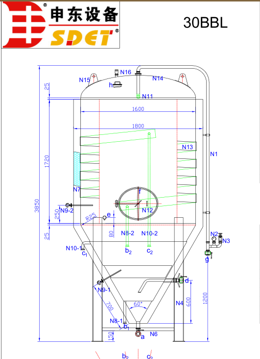20bbl fermentor for beer brewing system have stainless steel fittings materials are all adopt SUS304/316, applicable beer equipment to ensure the safety of food grade.